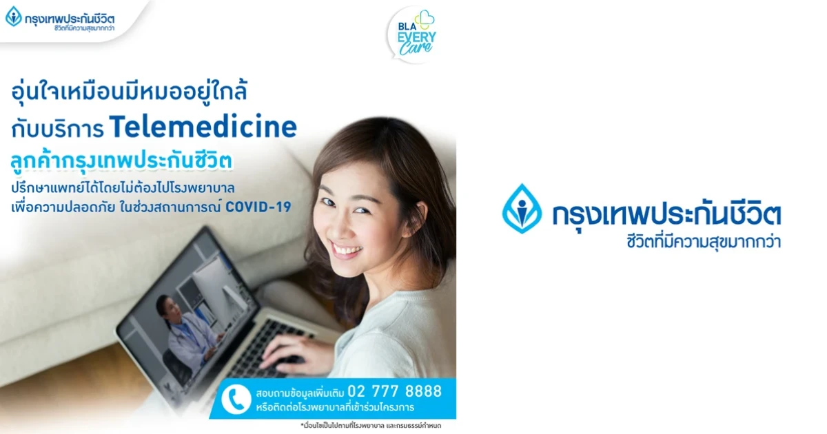 กรุงเทพประกันชีวิต จับมือโรงพยาบาลคู่สัญญามอบ บริการแพทย์ทางไกล (Telemedicine) ผ่านระบบเทคโนโลยีสมัยใหม่ อำนวยความสะดวก รวดเร็วในการดูแล ติดตาม ให้คำแนะนำ การติดตามผล และความปลอดภัยให้กับผู้ถือกรมธรรม์ รวมถึงสามารถเคลมค่าใช้จ่ายที่เกิดขึ้นผ่านทางระบบออนไลน์ เพื่อลดอัตราการเดินทางไปยังสถานที่สาธารณะภายใต้สถานการณ์การแพร่ระบาดของโรคติดเชื้อไวรัสโคโรนา 2019 (COVID-19)
