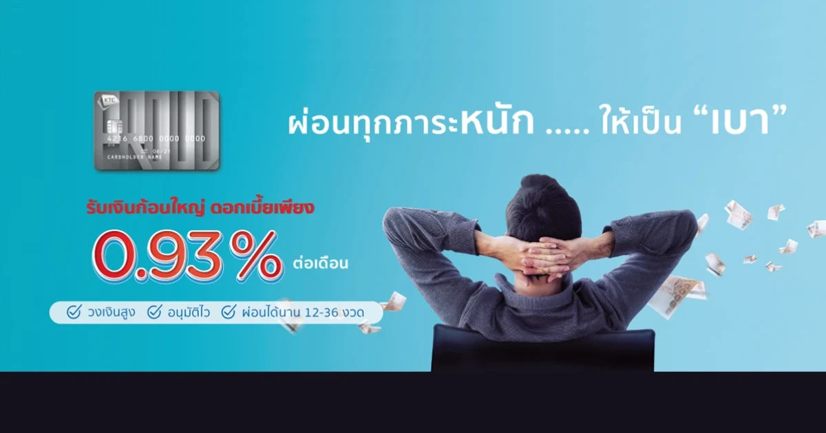 รับเงินก้อน ผ่อนเป็นงวด เงินกู้ดอกเบี้ยต่ำ ดอกเบาๆ เพียง 0.93% ต่อเดือน กับ KTC PROUD