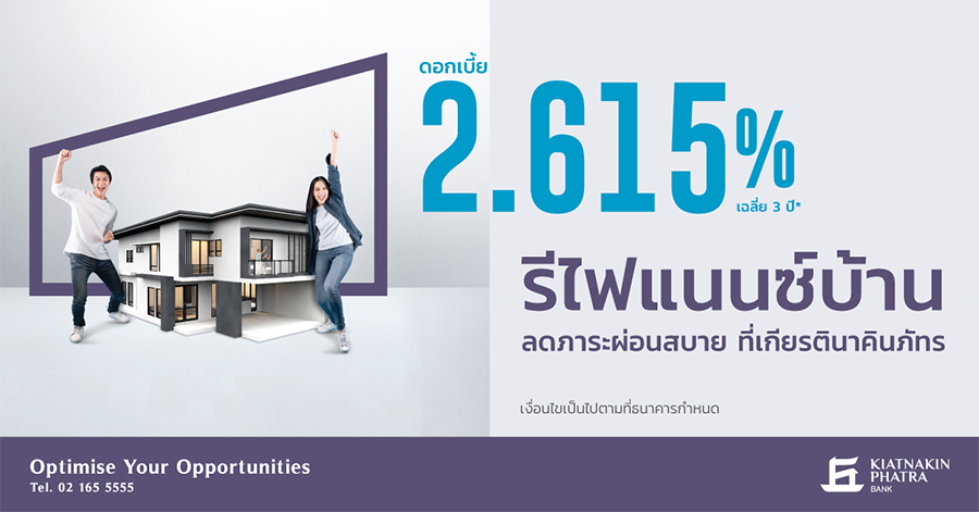 รีไฟแนนซ์บ้าน ลดภาระผ่อนสบาย ที่เกียรตินาคินภัทร เฉลี่ย 3 ปี ดอกเบี้ย 2.615% ต่อปี