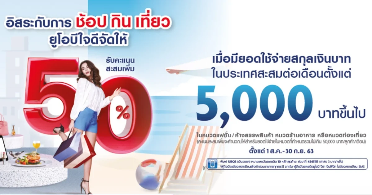อิสระกับ ช้อป กิน เที่ยว บัตรเครดิตยูโอบีใจดีจัดให้ รับคะแนนสะสมเพิ่ม 50%