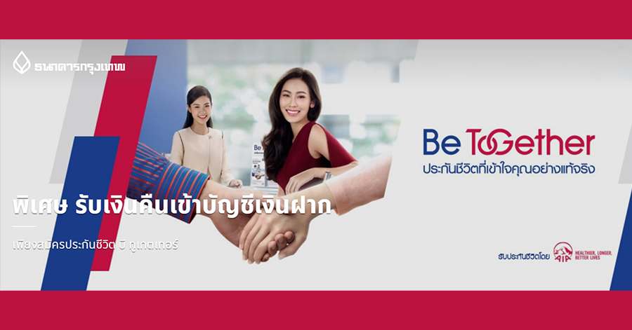 - รายการส่งเสริมการขายนี้ไม่นับรวมค่าเบี้ยประกันชีวิตควบการลงทุน บี ทูเกตเทอร์ ยูนิต ลิงค์ (Be Together Unit Linked)