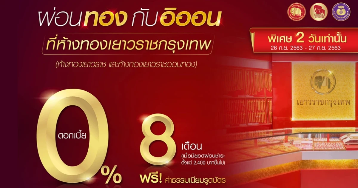 ผ่อนทองกับอิออน 0% 8 เดือน ที่ห้างทองเยาวราช กรุงเทพ