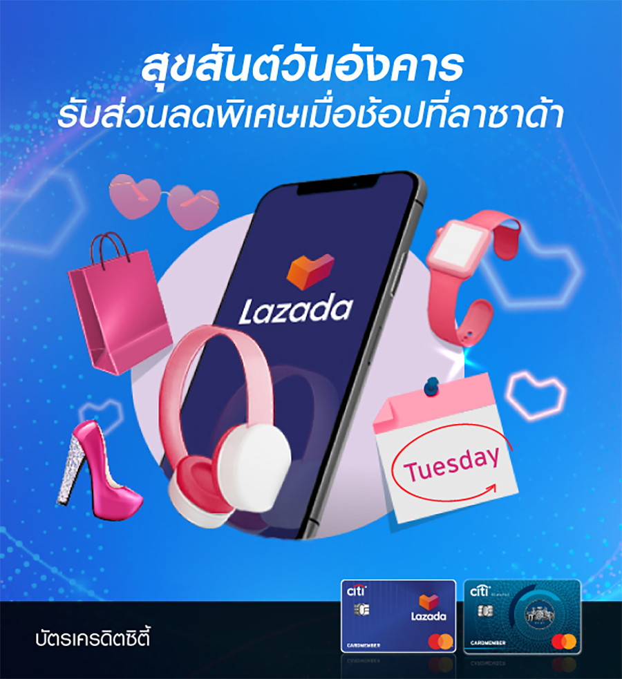 สมาชิกบัตรเครดิตซิตี้...รับส่วนลดสูงสุด 300 บาท ที่ลาซาด้าในวันอังคาร