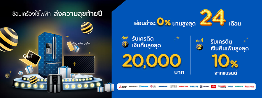 ส่งความสุขท้ายปี ช้อปเครื่องใช้ไฟฟ้ากับ บัตรเครดิต KTC โปรดีทั้งชำระเต็มจำนวน หรือผ่อนชำระ