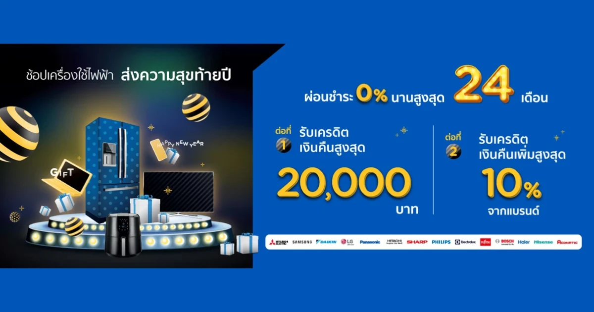 ส่งความสุขท้ายปี ช้อปเครื่องใช้ไฟฟ้ากับ บัตรเครดิต KTC โปรดีทั้งชำระเต็มจำนวน หรือผ่อนชำระ