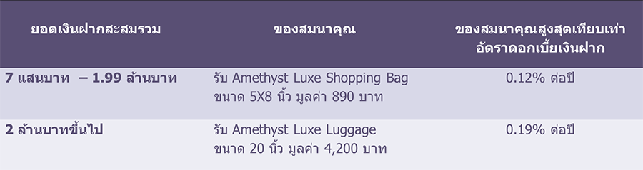 สิทธิพิเศษสำหรับลูกค้าใหม่ และลูกค้าปัจจุบันที่ได้รับ SMS แจ้งสิทธิเรียนเชิญแคมเปญ เพียงเปิด บัญชีเงินฝากประจำ 4 เดือน รับฟรี! ของสมนาคุณ