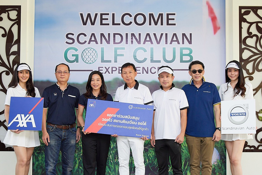 บริษัท แอกซ่าประกันภัย จำกัด (มหาชน) นำโดยนางสาวปวีณา เขมะรังสรรค์ ผู้อำนวยการสายงานบริหารลูกค้า (ที่ 3 จากซ้าย) ร่วมสนับสนุนกิจกรรมการแข่งขัน "สแกนดิเนเวียน กอล์ฟ คลับ เอ็กซ์พีเรียนซ์" (Scandinavian Golf Club Experience) นำโดยนายสมเกียรติ แซ่คู ประธานกรรมการบริหาร (กลาง) ชวนลูกค้าคนพิเศษของสแกนดิเนเวียน ออโต้ มาสัมผัสประสบการณ์การตีกอล์ฟสุดเอ็กซ์คลูซีฟ และร่วมเป็นเกียรติถ่ายภาพ ณ สนามกอล์ฟ ศูนย์พัฒนากีฬากองทัพบก รามอินทรา