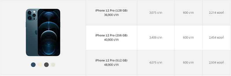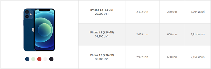 ไอโฟน 12 รุ่นที่ร่วมรายการ ผ่อน 0% 12 เดือน (รับส่วนลดทันที 4%)