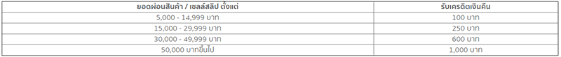 - บริษัทฯ ขอสงวนสิทธิ์ในการเครดิตเงินคืนเฉพาะสมาชิกบัตรที่ยังคงสภาพสมาชิกและมีประวัติการชำระดีจนถึงวันที่มีการเครดิตเงินคืนของท่าน