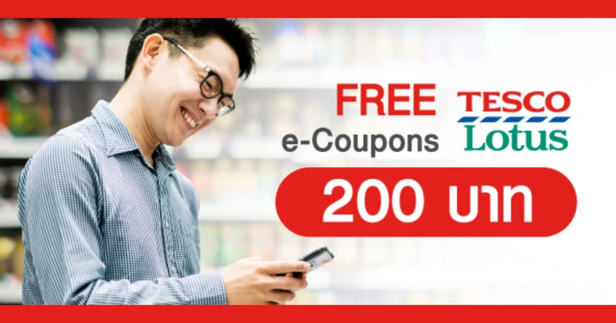 รับฟรี! e-Coupons Tesco Lotus 200 บาท สำหรับลูกค้าที่ซื้อประกัน FWD และหักชำระค่าเบี้ยฯ ผ่านบัญชี*