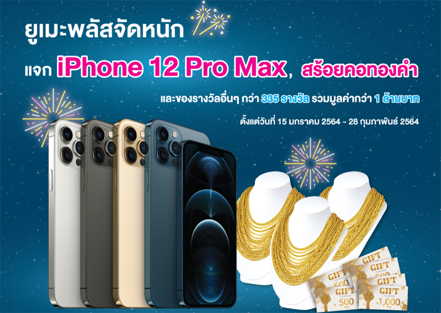 ยูเมะพลัสจัดหนัก...แจก iPhone 12 Pro Max, สร้อยคอทองคำ และของรางวัลอื่นๆ กว่า 335 รางวัล รวมมูลค่ากว่า 1 ล้านบาท ตั้งแต่วันที่ 15 มกราคม 2564 - 28 กุมภาพันธ์ 2564
