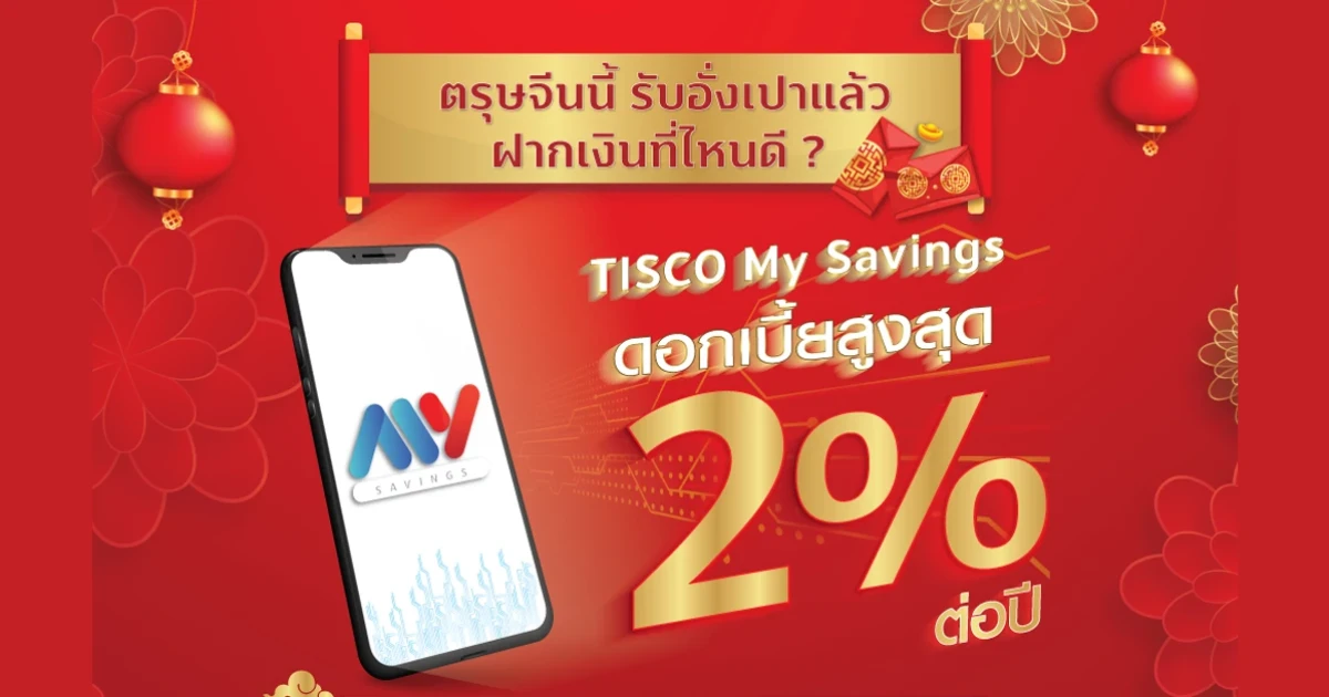 ตรุษจีนนี้ รับอั่งเปา แล้วฝากเงินกับบัญชี TISCO My Savings รับดอกเบี้ยสูงสุด 2.00% ต่อปี