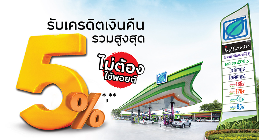- **จำกัดการคำนวณรายการเครดิตเงืนคืนสำหรับยอดการเติมน้ำมันสูงสุด 4,800 บาท/1 หมายเลขบัตรหลัก/1 รอบบัญชี โดยคำนวณยอดใช้จ่ายจากทั้งบัตรหลักและบัตรเสริมรวมกัน