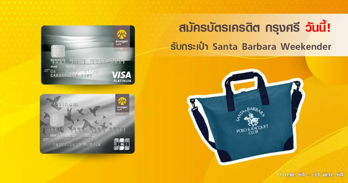 สมัครบัตรเครดิต กรุงศรี วันนี้! รับกระเป๋า Santa Barbara Weekender มูลค่า 2,390 บาท