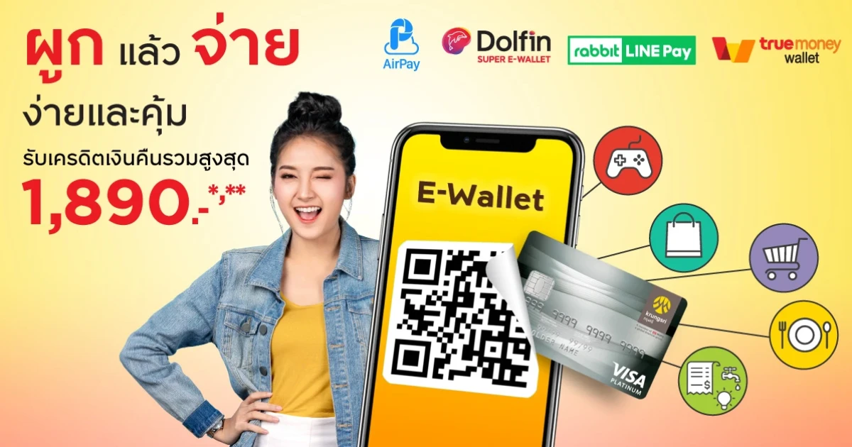 E-Wallet ผูกแล้วจ่าย ง่ายและคุ้ม กับบัตรเครดิต กรุงศรี รับเครดิตเงินคืนรวมสูงสุด 1,890 บาท*