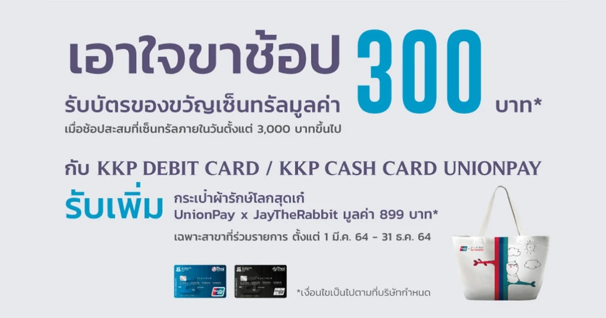 รับบัตรของขวัญเซ็นทรัล 300 บาทเมื่อช้อปสะสม กับ KKP CASH CARD UNIONPAY