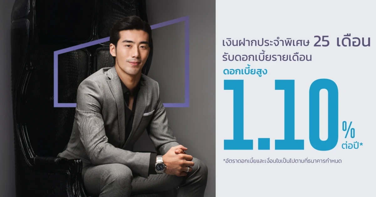 รับผลตอบแทนดอกเบี้ยสูงในอัตราที่แน่นอน กับเงินฝากประจำพิเศษ 25 เดือน ด้วยเงินฝากเริ่มต้นเพียง 100,000 บาท
