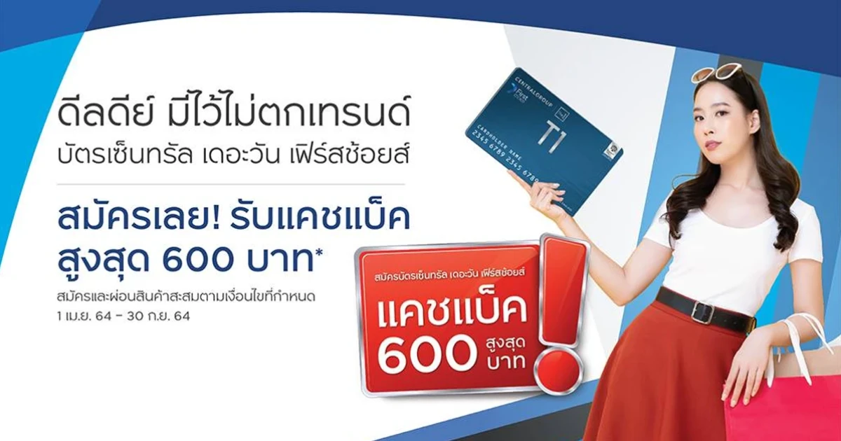 ดีลดีย์ มีไว้ไม่ตกเทรนด์ "บัตรเซ็นทรัล เดอะวัน เฟิร์สช้อยส์" สมัครวันนี้! รับแคชแบ็ค สูงสุด 600 บาท