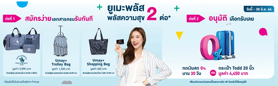 ยูเมะพลัส...พลัสความสุข 2 ต่อ ได้ทั้งของพรีเมี่ยม และอัตราดอกเบี้ยพิเศษ 0% ถึง 30 มิ.ย. 64