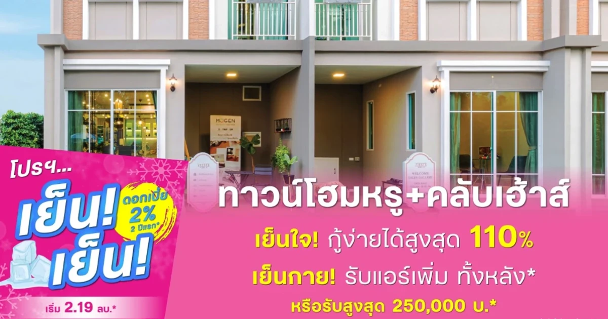 ทาวน์โฮมหรู+คลับเฮ้าส์ เย็นใจ! กู้ง่ายได้สูงสุด 110% เย็นกาย! รับแอร์เพิ่มทั้งหลัง เมื่อกู้กับธนาคารออมสิน