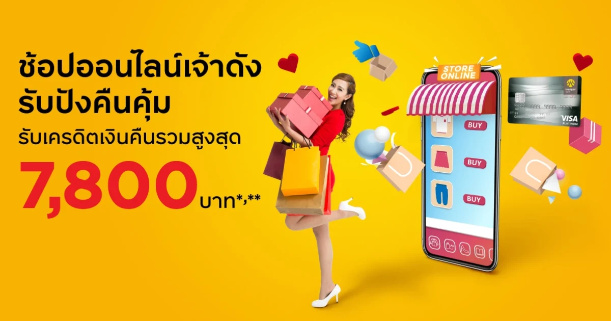 สิทธิพิเศษสำหรับลูกค้าบัตรเครดิต กรุงศรี ช้อปออนไลน์เจ้าดัง รับเครดิตเงินคืนรวมสูงสุด 7,800 บาท
