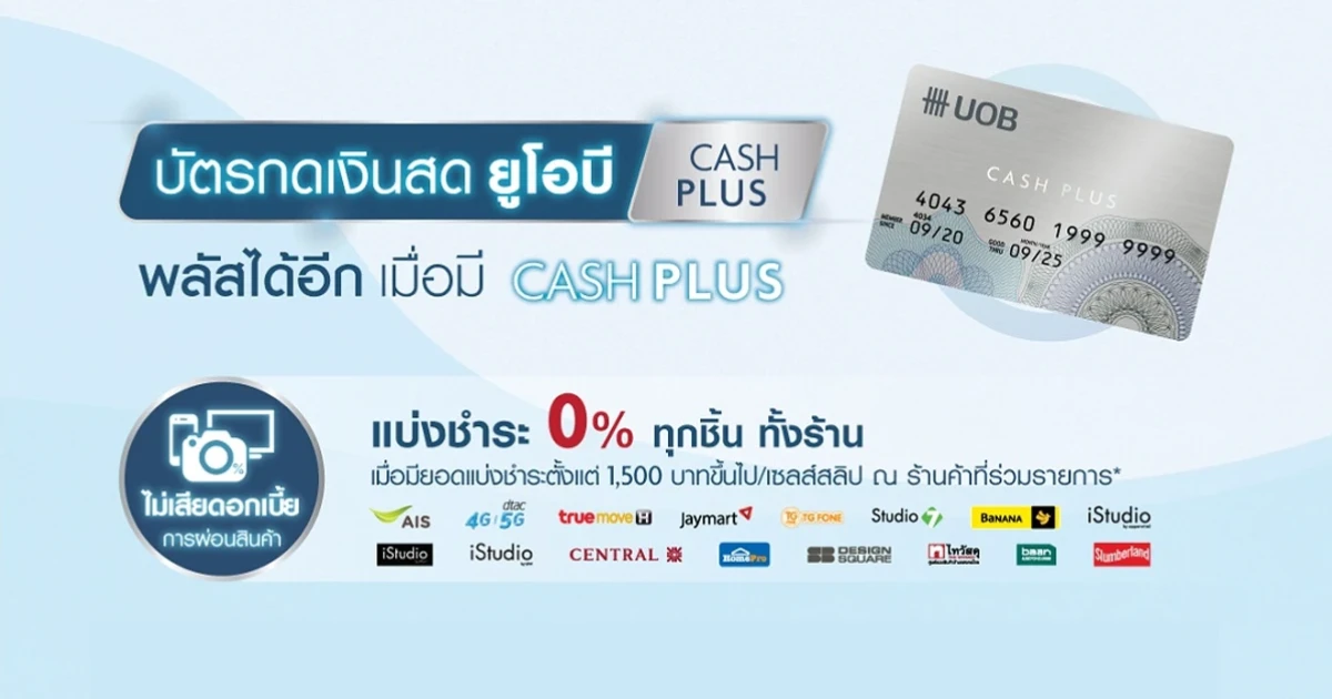 บัตรกดเงินสดยูโอบี แคชพลัส พลัสได้อีกเมื่อมี Cash Plus สิทธิประโยชน์ตั้งแต่ 1 เม.ย. - 30 มิ.ย. 64