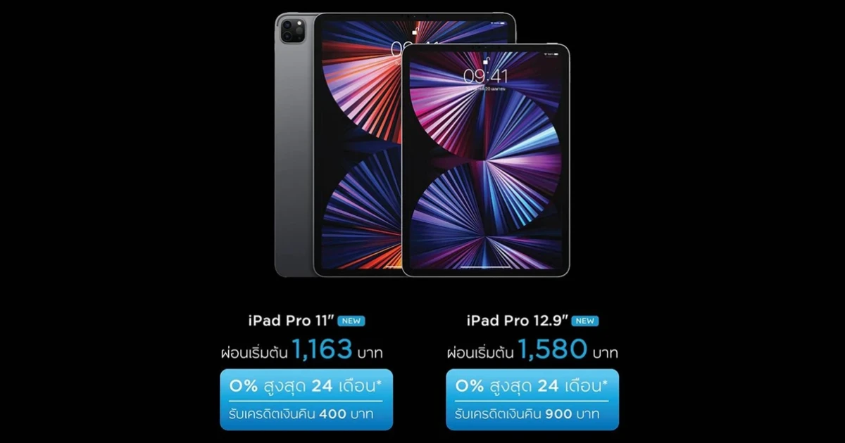 iPad Pro 2021 รุ่นที่ร่วมรายการผ่อน 0% สูงสุด 24 เดือน (ตารางราคาผ่อน 0%)