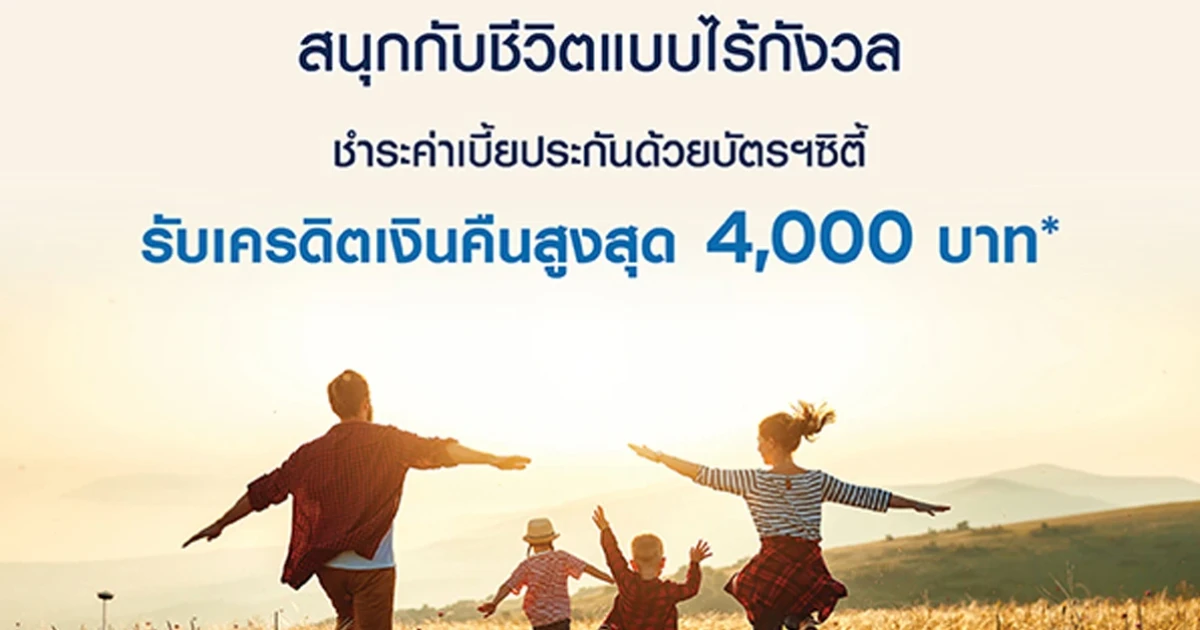 ชำระค่าเบี้ยประกันด้วยบัตรฯ ซิตี้ รับเครดิตเงินคืนสูงสุด 4,000 บาท ตั้งแต่วันนี้ - 30 มิ.ย. 64