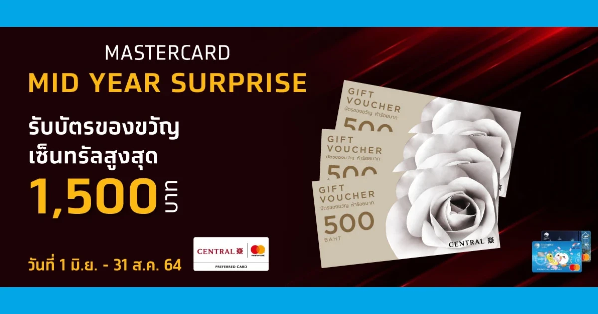 MASTERCARD MID YEAR SURPRISE รับบัตรของขวัญเซ็นทรัลสูงสุด 1,500 บาท