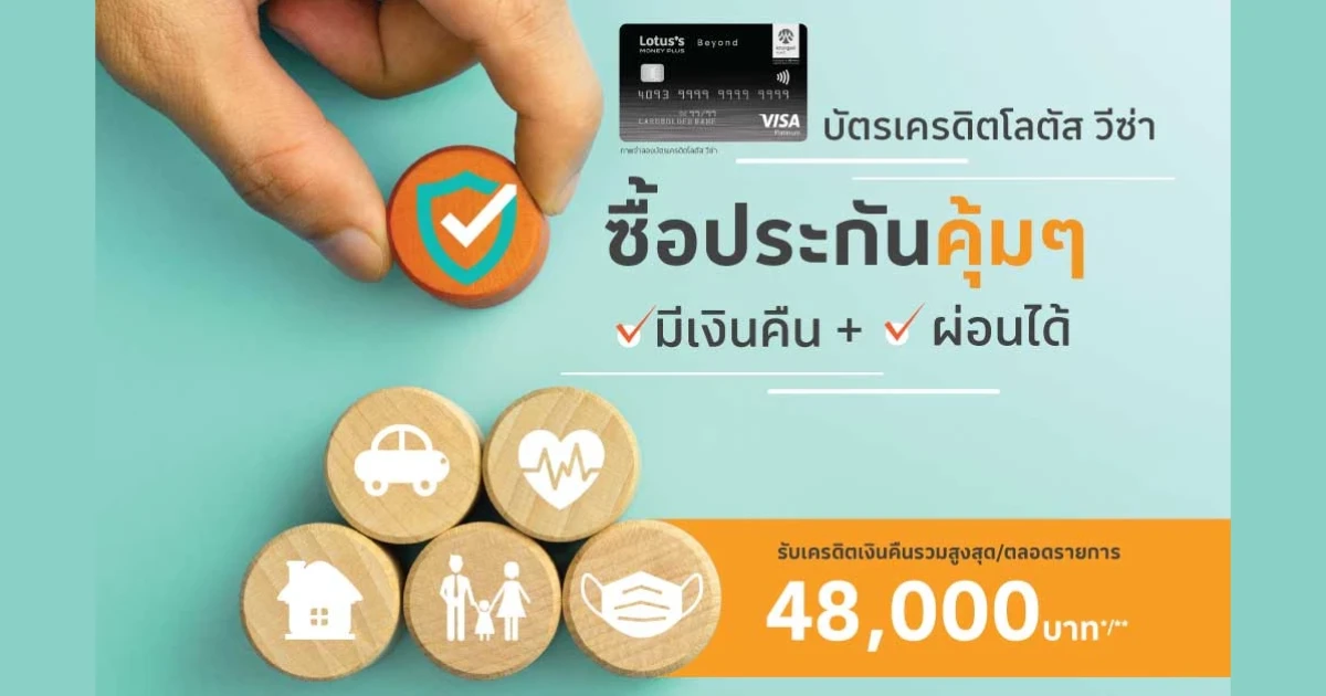 บัตรเครดิตเทสโก้ โลตัส วีซ่า ซื้อประกันมีคืน + ผ่อนได้
