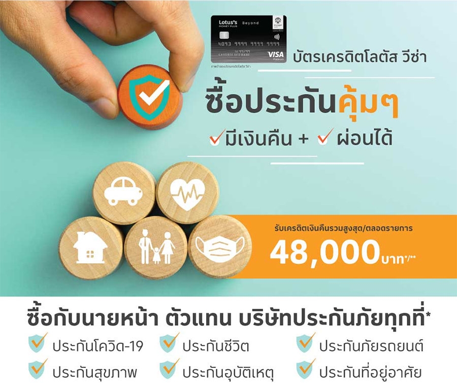 ซื้อประกันคุ้มๆ มีคืน+ผ่อนได้ กับนายหน้า ตัวแทน บริษัทประกันภัยทุกที่ ผ่านบัตรเครดิตโลตัส วีซ่า