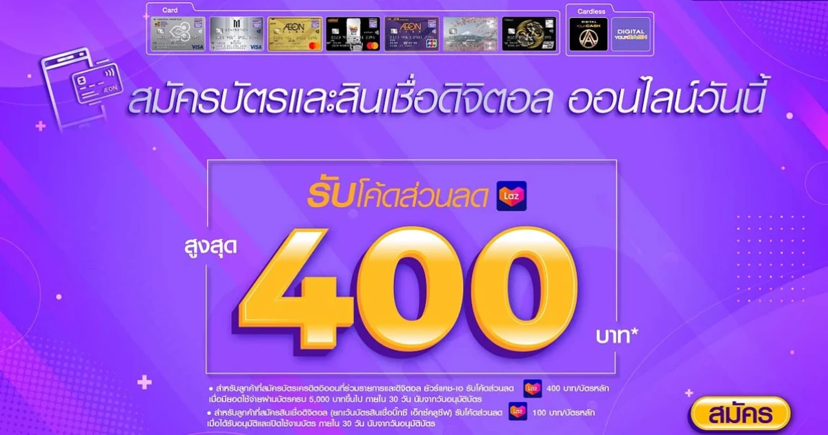 สมัครบัตรและสินเชื่ออิออนออนไลน์ วันนี้! รับโคัดส่วนลด Lazada สูงสุด 400 บาท