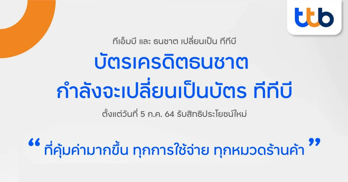 บัตรเครดิตธนชาต กำลังจะเปลี่ยนเป็นบัตร ทีทีบี ตั้งแต่วันที่ 5 ก.ค. 64 รับสิทธิประโยชน์ใหม่ที่คุ้มค่า
