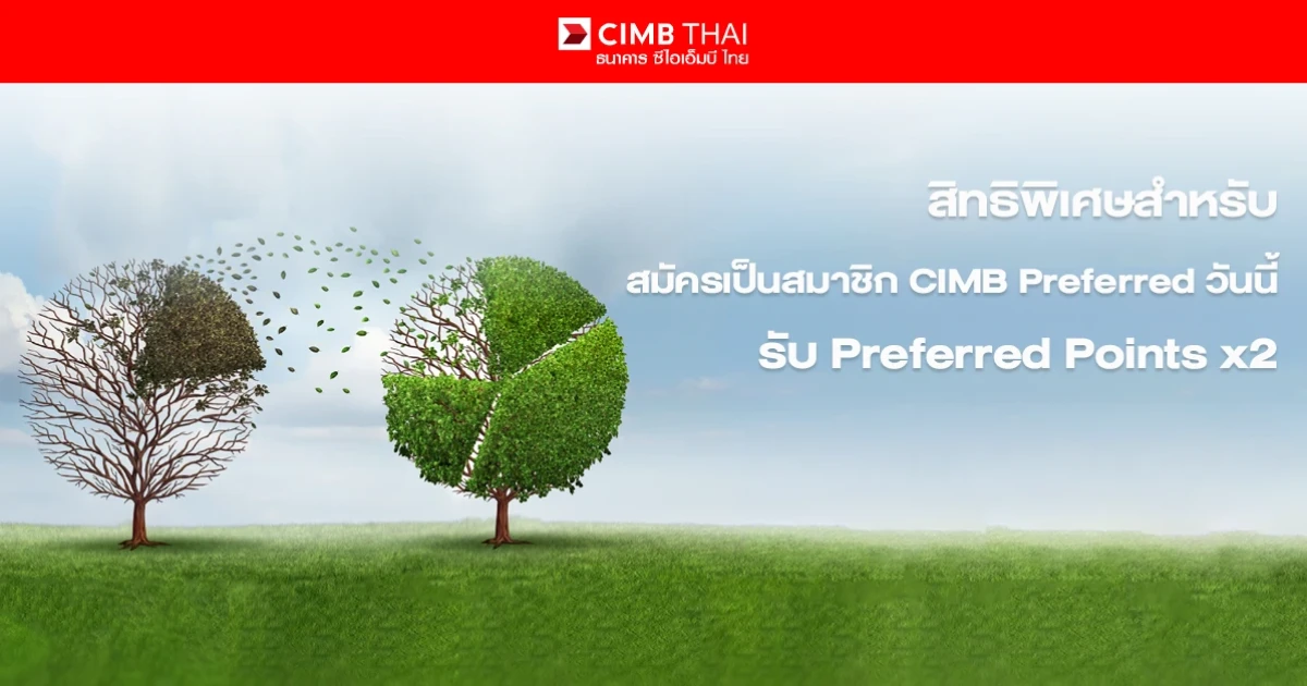สิทธิพิเศษสำหรับลูกค้าที่สมัครเป็นสมาชิก CIMB Preferred วันนี้ รับ Preferred Points x2