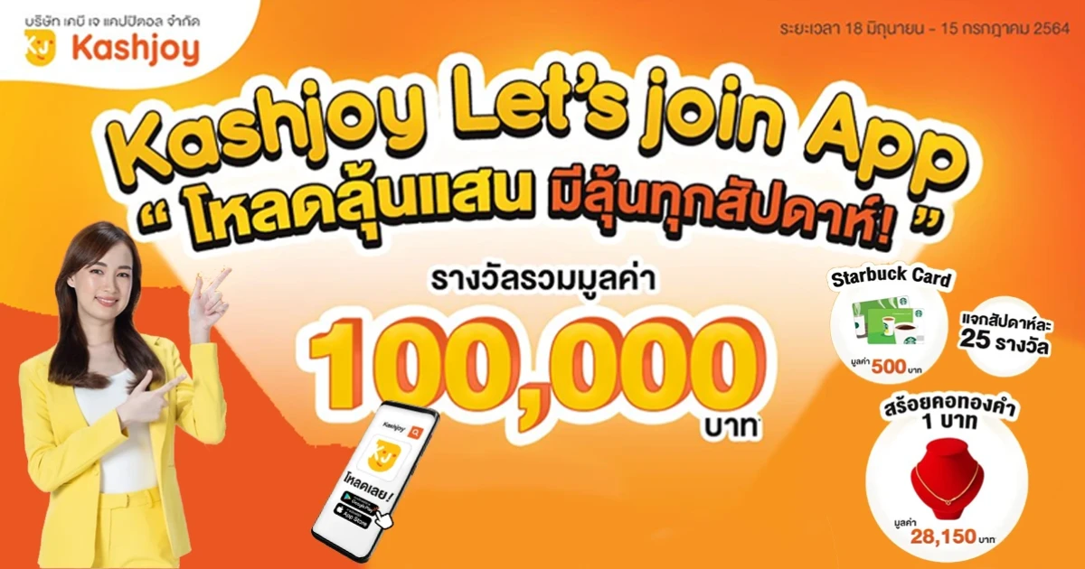 Kashjoy Let's join App โหลดลุ้นแสน มีลุ้นทุกสัปดาห์ แจกชุดใหญ่ แจกแบบจัดเต็ม