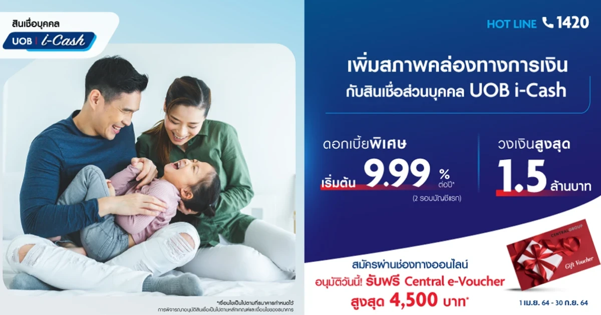 เพิ่มสภาพคล่องทางการเงิน กับสินเชื่อส่วนบุคคล UOB i-Cash รับดอกเบี้ยพิเศษเริ่มต้น 9.99% ต่อปี