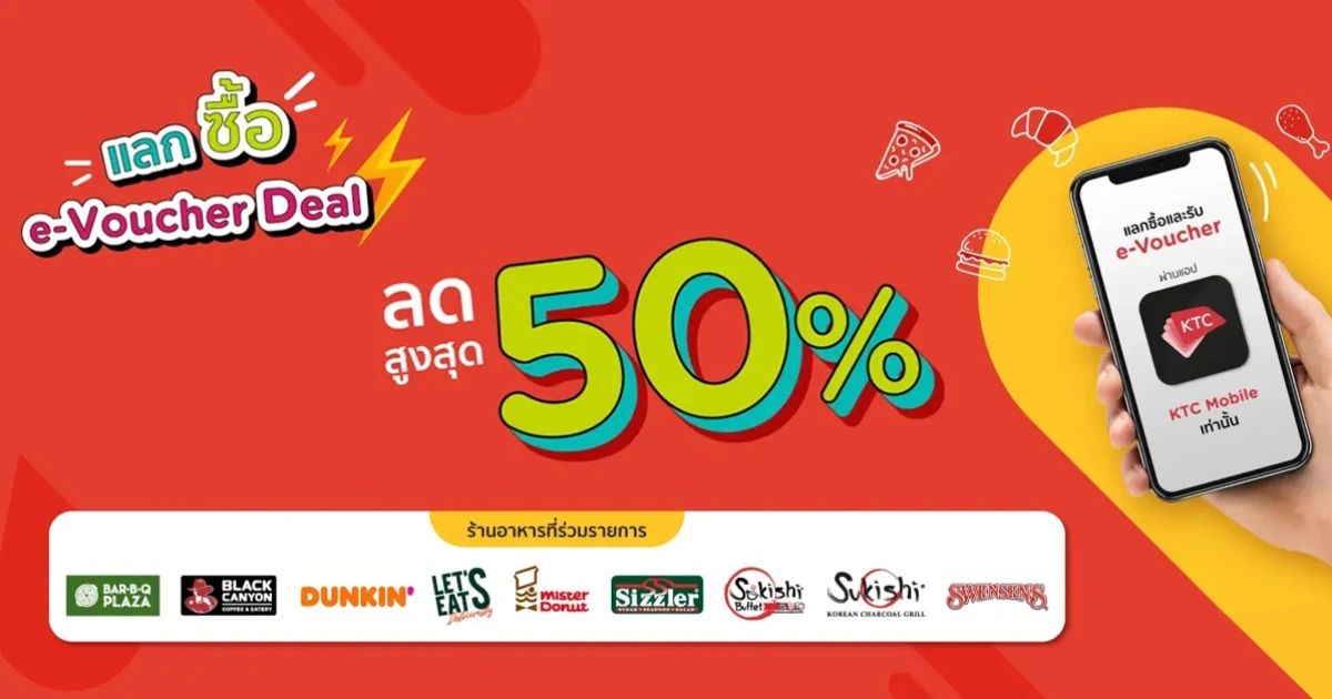 บัตรเครดิต KTC แลกซื้อ e-Voucher ดีลร้านอาหารสุดคุ้ม ในราคา 50% แลกผ่านแอป KTC Mobile