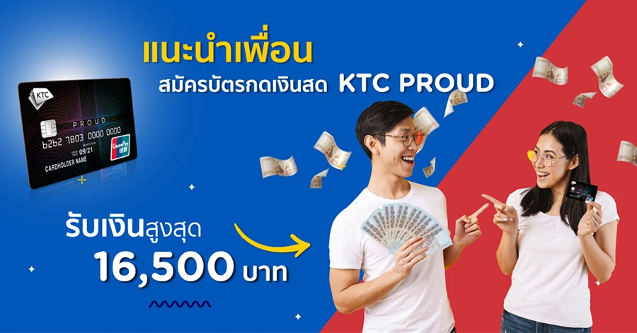 KTC PROUD ชวนแนะนำเพื่อน ผู้แนะนำรับสูงสุด 16,500 บาท วันนี้ - 31 ธ.ค. 64