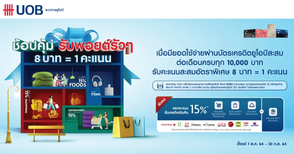 โปรโมชั่นพิเศษ ลูกค้าบัตรเครดิตยูโอบี ช้อปคุ้ม รับพอยต์รัวๆ 8 บาท = 1 คะแนน
