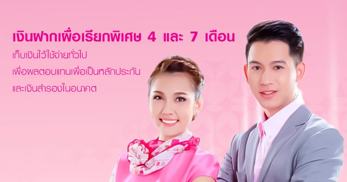 - ใช้สมุดฝากเงินประเภทเผื่อเรียกพิเศษ 4 เดือน หรือ 7 เดือน เล่มเดิมมาฝากเพิ่มได้