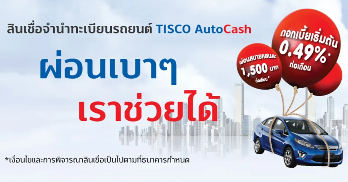 สินเชื่อจำนำทะเบียนรถยนต์ TISCO AutoCash ผ่อนเบาๆ เราช่วยได้ ดอกเบี้ยเริ่มต้น 0.49% ต่อเดือน