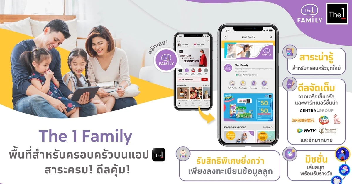 The 1 (เดอะ วัน) ผู้นำดิจิทัลไลฟ์สไตล์และลอยัลตี้แพลตฟอร์มอันดับ 1 ของไทย ภายใต้กลุ่มเซ็นทรัล เปิดตัว The 1 Family ซึ่งเป็น Online Community Hub สำหรับครอบครัวบนแอป The 1 เชื่อมโยงระหว่างครอบครัวมิลเลนเนียล และแบรนด์ต่างๆ ในเครือเซ็นทรัลและพาร์ทเนอร์กว่า 2,000 แบรนด์ โดยต่อยอดความเชี่ยวชาญด้าน Insights และ MarTech สร้างประสบการณ์ที่ครบทั้งสาระน่ารู้ รีวอร์ด มิชชั่น และโปรโมชั่นสำหรับครอบครัวและลูกน้อย รู้ใจด้วยประสบการณ์ Personalization เผยสถิติช่วง Soft Launch มียอดผู้ใช้งาน The 1 Family คิดเป็น 50% ของกลุ่มพ่อแม่ Millennial ในฐานข้อมูล The 1 ยอด engagement เพิ่มขึ้นถึง 178% และยอดขายจากมิชชั่นสินค้ากลุ่มแม่และเด็กเพิ่มขึ้นกว่า 297%