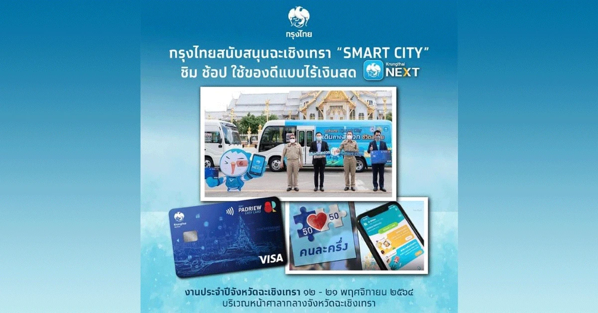 ธนาคารกรุงไทยยกระดับฉะเชิงเทราสู่ Smart City เปิดตัว "แปดริ้วอีซี่การ์ด" บัตรอัตลักษณ์จังหวัดฉะเชิงเทรา ที่เป็นทั้งบัตรเดบิต และ e-Money เชิญชวนเที่ยวงานนมัสการหลวงพ่อโสธร ปีที่ 131 สนับสนุนโครงการคนละครึ่ง โดยใช้จ่ายที่ร้านค้าและร้านดังของจังหวัดกว่า 400 ร้านในงาน ตั้งแต่ 12-21 พฤศจิกายน 2564 ชมริ้วขบวนแห่ของธนาคาร สืบสานประเพณีสัมผัสเสน่ห์เมืองแห่งสายน้ำบางปะกง 16 พฤศจิกายนนี้ นำโดย อแมนด้า ชาร์ลีน ออบดัม