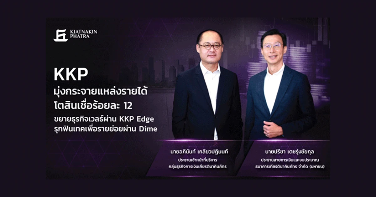 กลุ่มธุรกิจการเงินเกียรตินาคินภัทร (KKP) แถลงทิศทางธุรกิจปี 2565 มุ่งหน้าสู่การเป็นสถาบันการเงินที่มีผลการดำเนินงานเป็นเลิศ ธุรกิจธนาคารตั้งเป้าขยายสินเชื่อร้อยละ 12 โดยเฉพาะสินเชื่อเช่าซื้อรถยนต์ และสินเชื่อผู้บริโภค ด้านธุรกิจตลาดทุน ขยายฐานธุรกิจที่ปรึกษาการลงทุน (Wealth Management) ไปยังลูกค้ากลุ่ม Mass Affluent ผ่านบริการ KKP Edge และรุกธุรกิจบริการทางการเงินแบบดิจิทัลผ่าน Dime ฟินเทคน้องใหม่ภายในกลุ่ม เผยผลการดำเนินงานปี 2564 ดีกว่าเป้า กำไรเติบโตร้อยละ 23 กำไรเบ็ดเสร็จโตร้อยละ 31