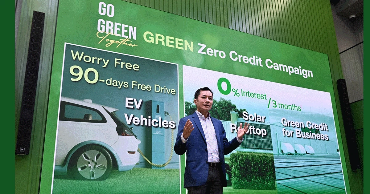 ธนาคารฯ มุ่งหวังที่จะชวนคนไทยทุกคนร่วมสร้างสังคมสีเขียวไปด้วยกัน จึงเป็นที่มาของการเปิดตัวโครงการ GO GREEN Together ในวันนี้ ซึ่งนับว่าเป็นธนาคารแรกที่ช่วยเชื่อมต่อและผลักดันให้ประเทศไทยเกิด Green Ecosystem อย่างครบวงจร ประเดิมเปิดโครงการด้วยแคมเปญสินเชื่อ GREEN ZERO จัดให้ครบทั้งสินเชื่อพร้อมโปรโมชั่นพิเศษ สำหรับลูกค้ารายย่อยและลูกค้าธุรกิจ โดยธนาคารฯ เตรียมวงเงินสินเชื่อไว้ 3,000 ล้านบาท ซึ่งมีรายละเอียดสินเชื่อ ดังนี้