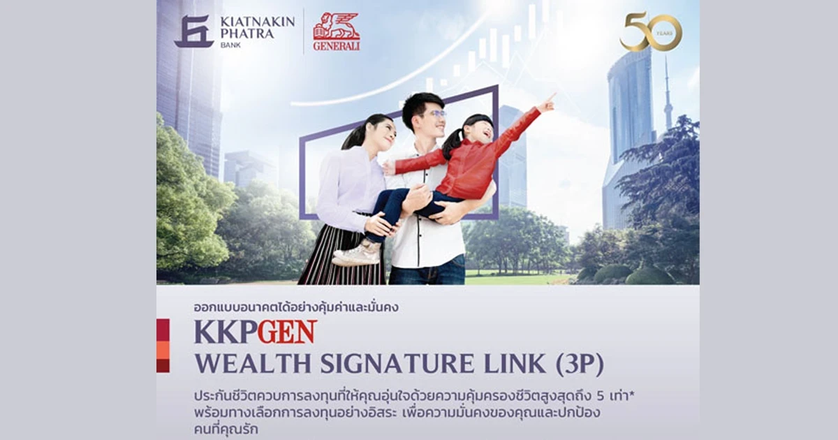 ขอคำปรึกษาแผนประกันควบการลงทุนได้ที่ ธนาคารเกียรตินาคินภัทรทุกสาขา หรือโทร. 0-2165-5555 รายละเอียดเพิ่มเติมเกี่ยวกับผลิตภัณฑ์ KKPGEN Wealth Signature Link (3P) ที่ https://link.kkpfg.com/EvuoD ธนาคารเกียรตินาคินภัทรในฐานะนายหน้าประกันชีวิต รับประกันภัยโดยบริษัท เจนเนอราลี่ ประกันชีวิต (ไทยแลนด์) ผู้ซื้อควรทําความเข้าใจลักษณะสินค้า เงื่อนไขผลตอบแทน และความเสี่ยง ก่อนตัดสินใจลงทุน