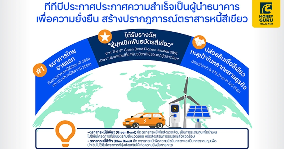 ทีเอ็มบีธนชาต หรือ ทีทีบี ตอกย้ำการเป็นธนาคารเพื่อความยั่งยืน มุ่งส่งเสริมและสร้างความเปลี่ยนแปลงให้สังคมสู่เศรษฐกิจคาร์บอนต่ำ ประกาศความสำเร็จจากการผสานความร่วมมือกับ IFC เป็นธนาคารไทยรายแรกที่บุกเบิกการออกตราสารหนี้สีเขียว เดินหน้าสร้างความแข็งแกร่งให้กับระบบนิเวศอุตสาหกรรม EV ผ่านการขยายสินเชื่อเพื่อสิ่งแวดล้อม เผยปี 2565 ปล่อยสินเชื่อสีเขียวไปกว่า 5,275 ล้านบาท จากเป้าหมายรวม 4,500 ล้านบาทในหลากหลายธุรกิจ
