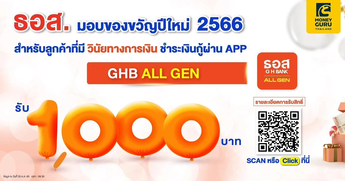 ธนาคารอาคารสงเคราะห์ (ธอส.) มอบของขวัญปีใหม่สำหรับลูกค้าสินเชื่อบ้านที่มีวินัยการผ่อนชำระเงินงวดสินเชื่อบ้านสม่ำเสมอให้ได้รับ Cashback 1,000 บาท โดยแบ่งลูกค้าเป็น 2 กลุ่ม ประกอบด้วย ลูกค้ารายย่อยที่มีสถานะบัญชีปกติ ที่มีวงเงินกู้ไม่เกิน 2 ล้านบาท และมีวินัยในการผ่อนชำระย้อนหลังรวม 48 เดือน (นับถึงงวดเดือนพฤศจิกายน 2565) และลูกค้าที่เคยปรับปรุงโครงสร้างหนี้ ปัจจุบันมีสถานะบัญชีปกติ และมีประวัติการผ่อนชำระหนี้ย้อนหลัง 6 เดือน (นับถึงงวดเดือนพฤศจิกายน 2565) เพียงชำระเงินงวดผ่าน Application : GHB ALL หรือ GHB ALL GEN ติดกันไม่น้อยกว่า 2 เดือน (ในงวดเดือนพฤศจิกายน-ธันวาคม 2565 หรือ งวดเดือนธันวาคม 2565-มกราคม 2566)