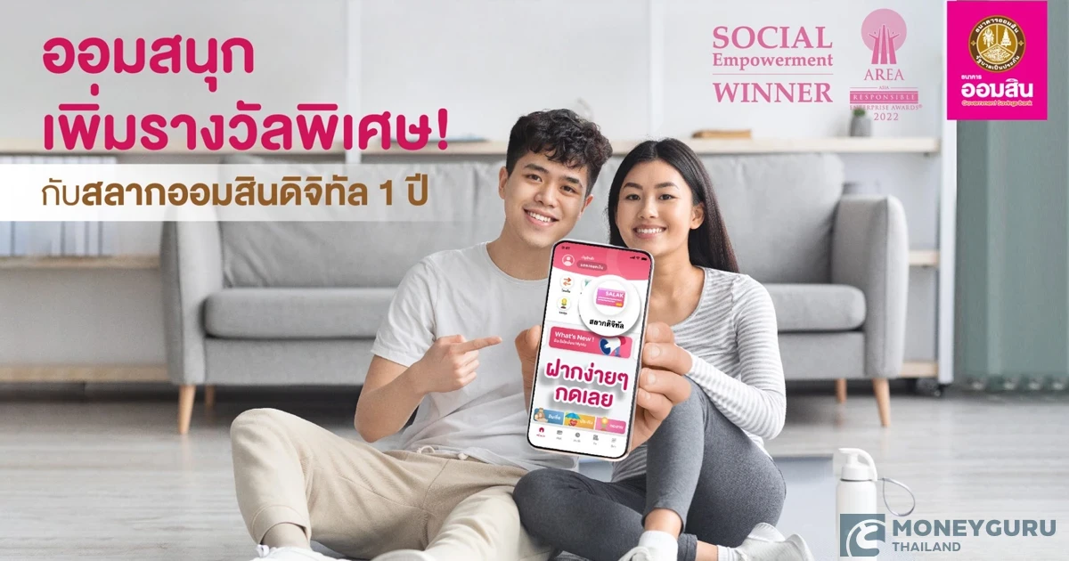 เพิ่มสุข ลุ้นสนุก ออมสบาย กับสลากออมสินดิจิทัล 1 ปี ลุ้นเพิ่มรางวัลพิเศษ 100,000 บาท ทุก 3 เดือน รวม 80 รางวัล และลุ้นรางวัลที่ 1 มูลค่า 3 ล้านบาท พร้อมเพิ่มผลตอบแทนเงินรางวัลเลขท้าย