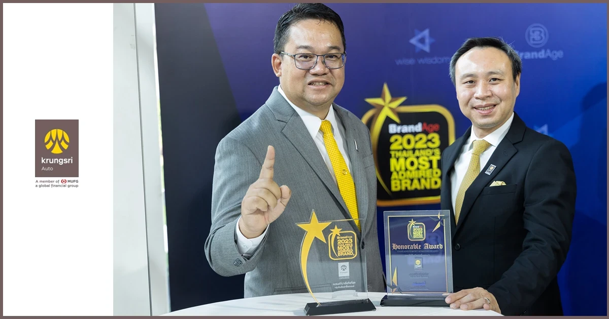 "กรุงศรี ออโต้" ผู้นำธุรกิจสินเชื่อยานยนต์ครบวงจร เครือธนาคารกรุงศรีอยุธยาจำกัด (มหาชน) นำโดย นายคงสิน คงคา (ซ้ายสุด) ประธานคณะเจ้าหน้าที่ด้านธุรกิจสินเชื่อยานยนต์ ธนาคารกรุงศรีอยุธยา จำกัด (มหาชน) รับรางวัล "แบรนด์อันดับหนึ่งที่มีผู้บริโภคเชื่อถือมากที่สุดประจำปี 2566" ในหมวด "ธนาคารและบริการทางการเงิน" กลุ่ม "สินเชื่อเช่าซื้อรถยนต์" ต่อเนื่องเป็นปีที่ 11 พร้อมด้วยรางวัลพิเศษ Brand Impact Award จากการสำรวจวิจัยความน่าเชื่อถือของแบรนด์ในประเทศไทย 2023 Thailand’s Most Admired Brand & Why We Buy? โดยนิตยสารแบรนด์เอจ ตอกย้ำความเป็นแบรนด์ผู้นำสินเชื่อยานยนต์เพื่อผู้ใช้รถที่เข้าใจพฤติกรรมและความต้องการของผู้บริโภคจนได้รับการยอมรับสูงสุดในตลาด ด้วยการยกระดับผลิตภัณฑ์ บริการ และนวัตกรรม ที่สร้างสรรค์ชีวิตผู้ใช้รถให้ดีขึ้นอย่างต่อเนื่อง